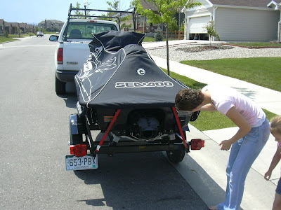 I couldn't believe he came home with a Jet Ski. We have talked about getting one for awhile but never really very seriously. We love going to Glendo every summer and we recently frustrated that we don't get to play with the 4 wheelers more often because it is so difficult to find legal places to ride them that are close and it is hard to load everyone up to travel for hours before playing and then travel back. It is the biggest present I have ever "unwrapped"....