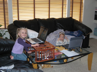 Darian and is always running around the house in it so she was excited to be able to wear it to school today. What a cute smile!! Cody and Alex are now obsessed with playing "games" on the computer now. They need almost constant help with playing so that gets a little