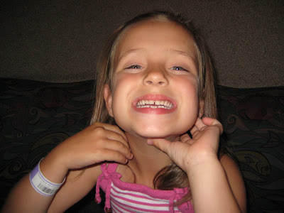 Olivia at the restaurant showing off her 2 loose teeth on the bottom. Hopefully they come out soon, they are really close and she is asking us to pull them for her but I can't hold on to them well enough to pull. We should be doing the first visit from the tooth fairy soon :-)